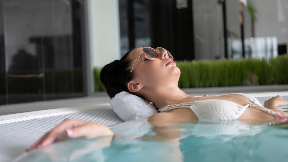 Sanitize the water using an approved spa sanitizer, such as chlorine or bromine, following the manufacturer’s instructions․ Shock the water weekly to eliminate contaminants and maintain water clarity․ Regularly clean the filter to remove debris and ensure optimal water circulation․